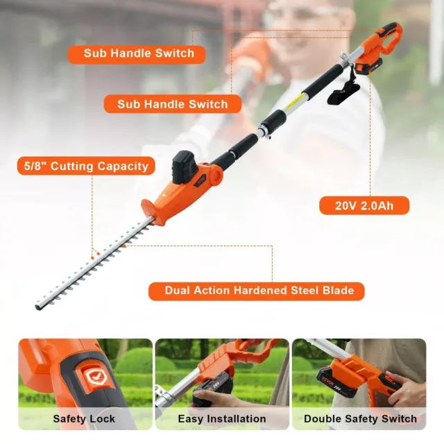 18″ Cordless Hedge Trimmer with Telescoping Pole and Dual-Action Blade