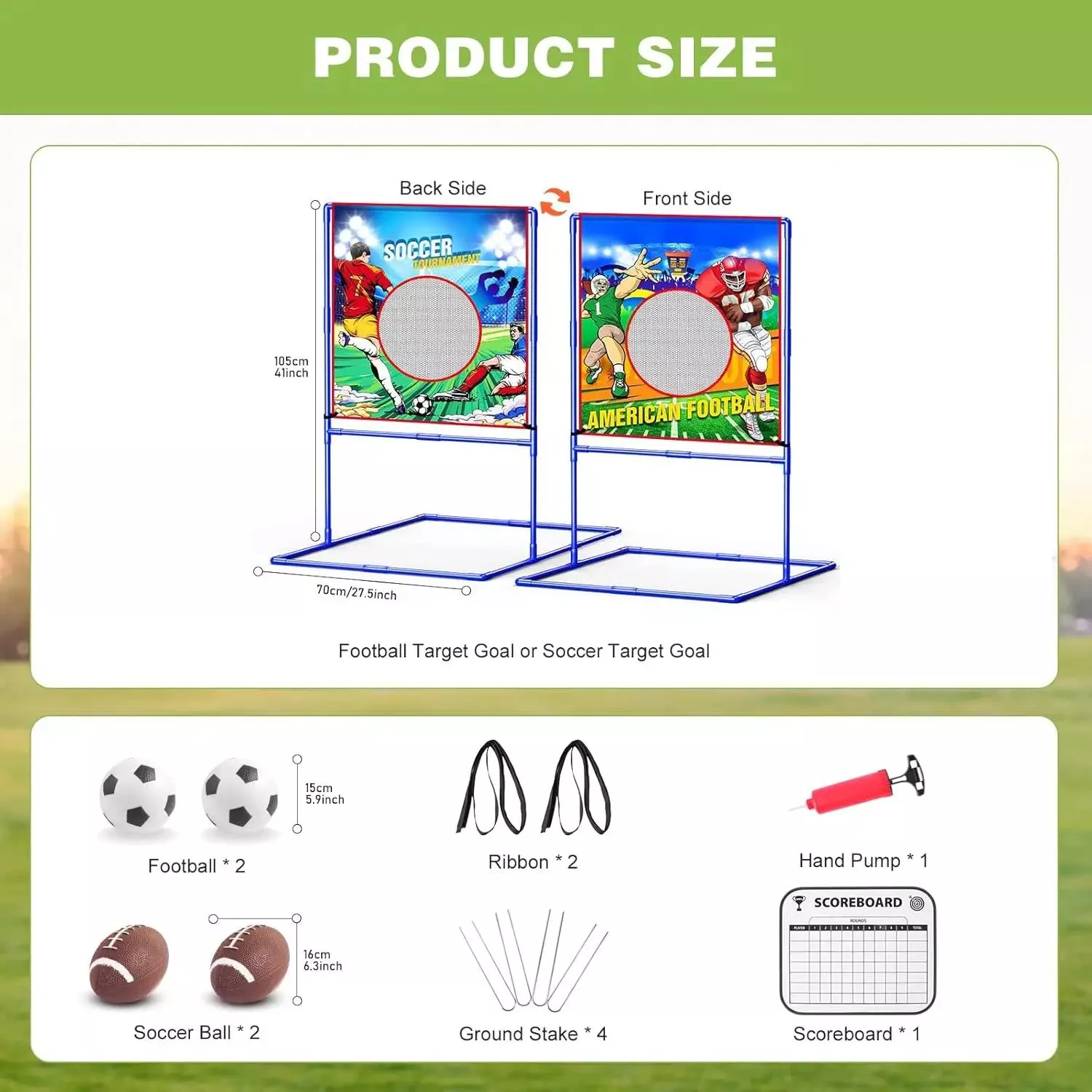 2-in-1 Kids Football & Soccer Goal Toss Game with Balls – Indoor Outdoor Fun