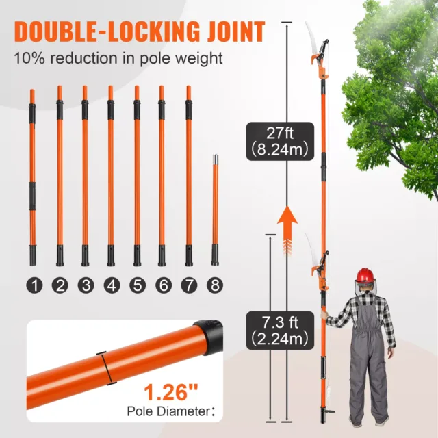 Need flexibility? This tree trimming saw extends from 7.3 feet to an impressive 27 feet, allowing you to trim high or low with ease. Whether you’re shaping smaller trees or cutting thick branches overhead, the adjustable design ensures you have the right length for the job.