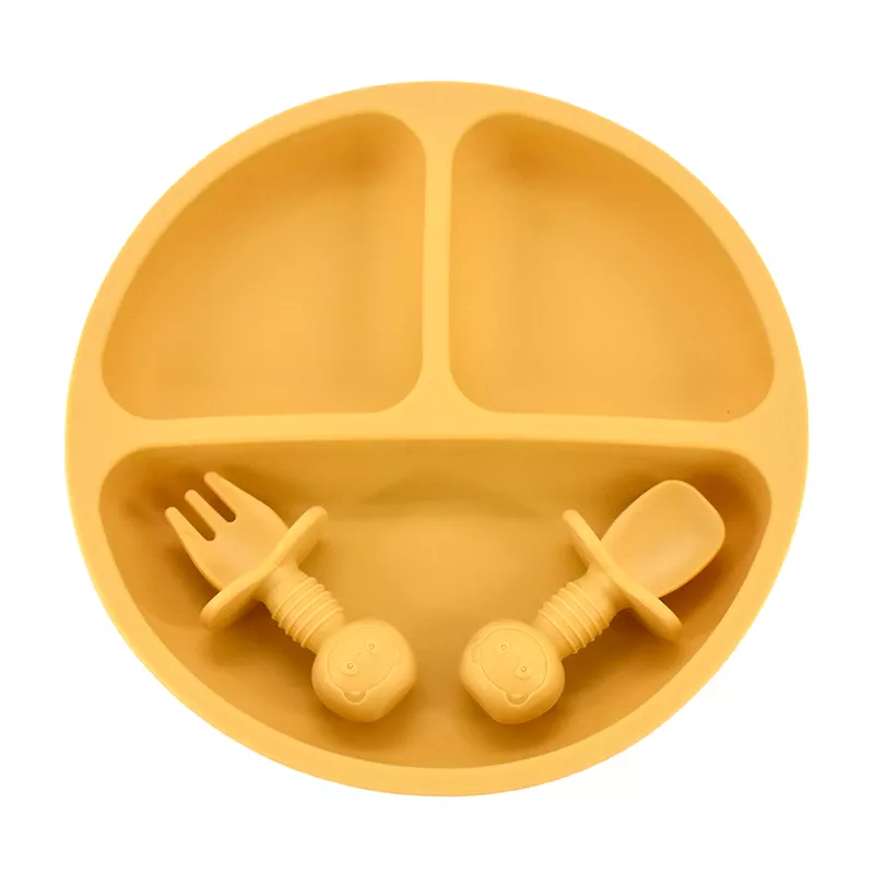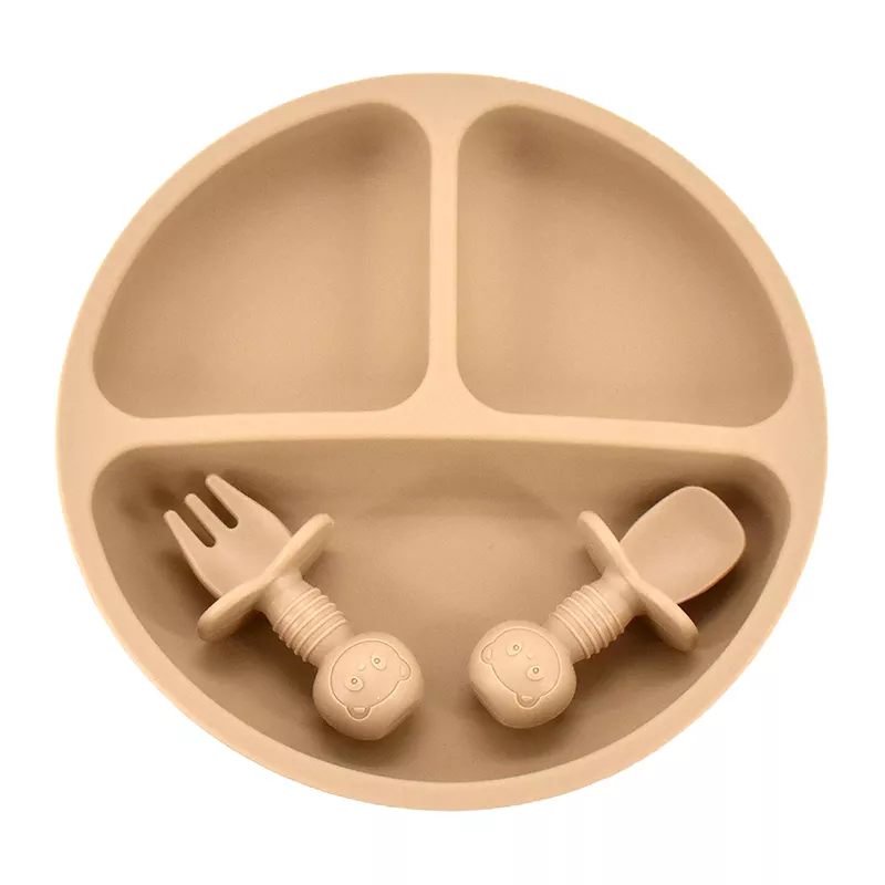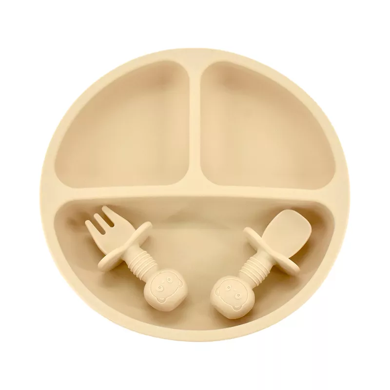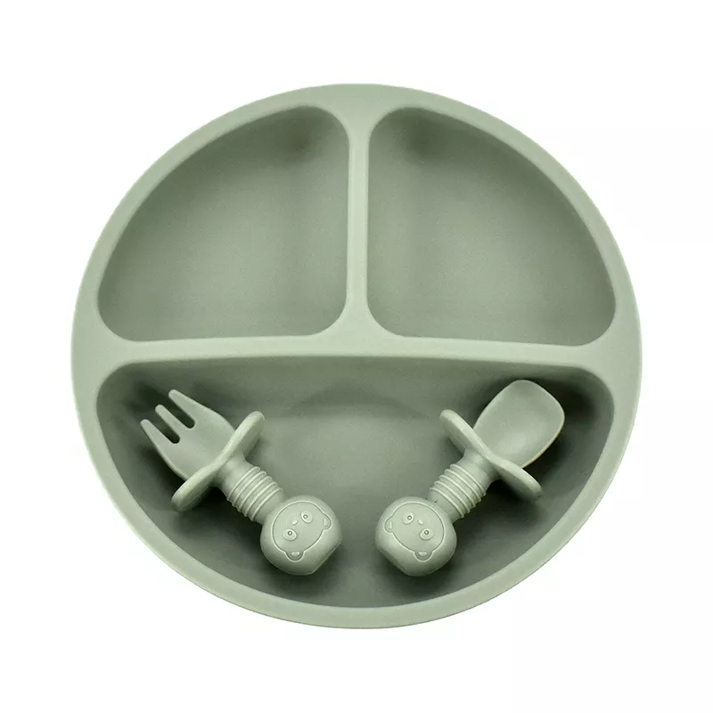 3PCS Baby Silicone Tableware Set with Suction Plate, Spoon & Fork