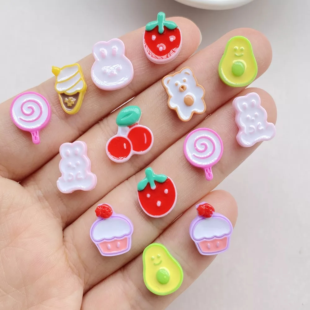 • 50-Piece Set: Get a generous mix of resin decorations, including strawberries, cherries, lollipops, and cakes—each designed with vibrant details and a flat back for easy application.