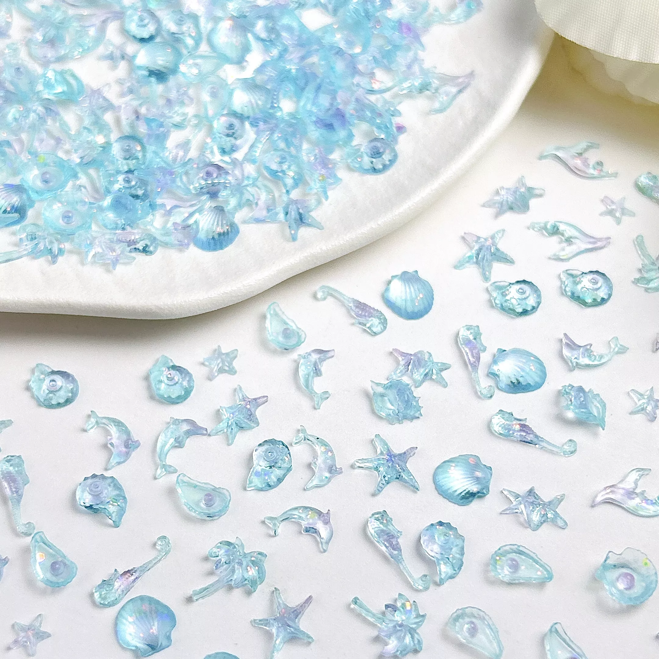 50PCS Ocean Theme Resin Nail Charms 3D Starfish Shell Conch Decorations