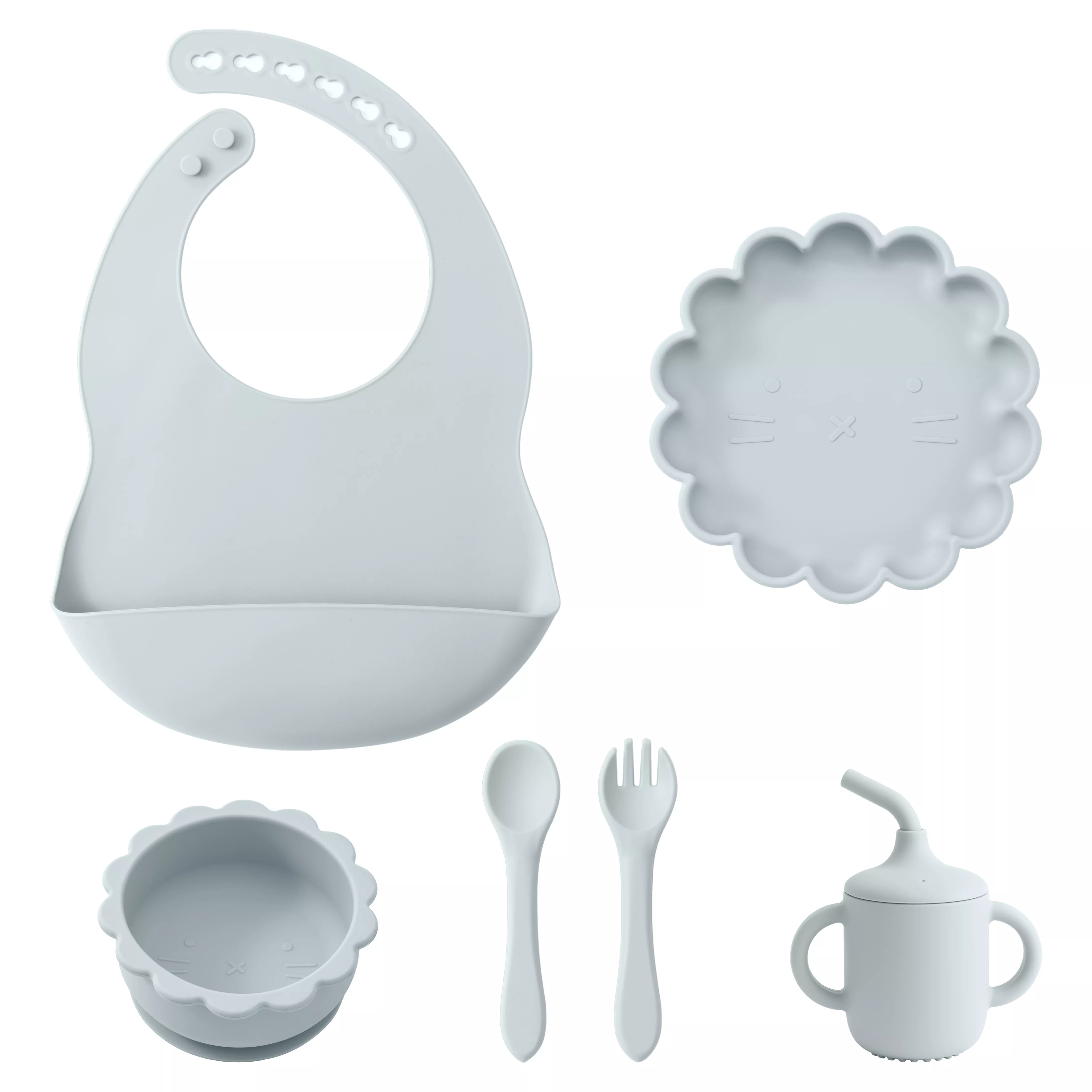 5PCS Silicone Baby Feeding Set with Lion Plate, Bib, Spoon, Bowl & Cup
