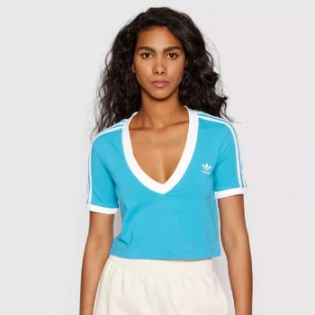 Adidas Women’s Light Blue V-Neck T-Shirt for Spring/Summer