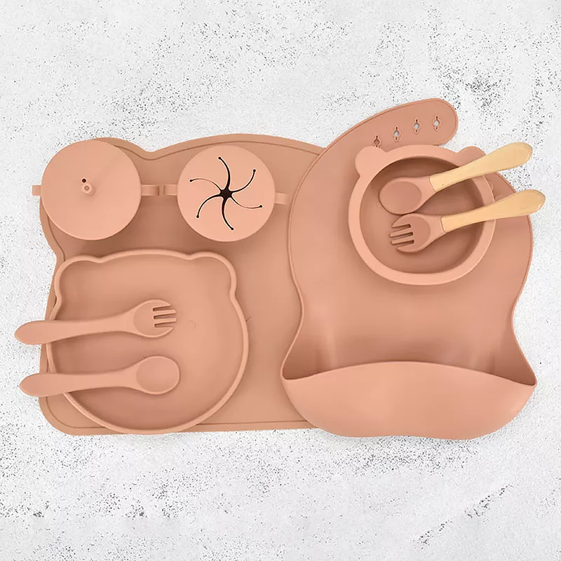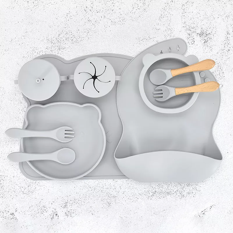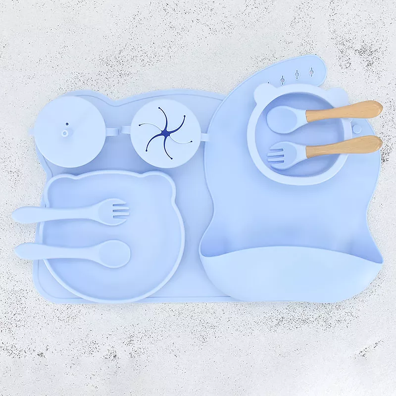 Baby Silicone Feeding Set with Suction Plate, Bowl, Cup, Bib & Utensils