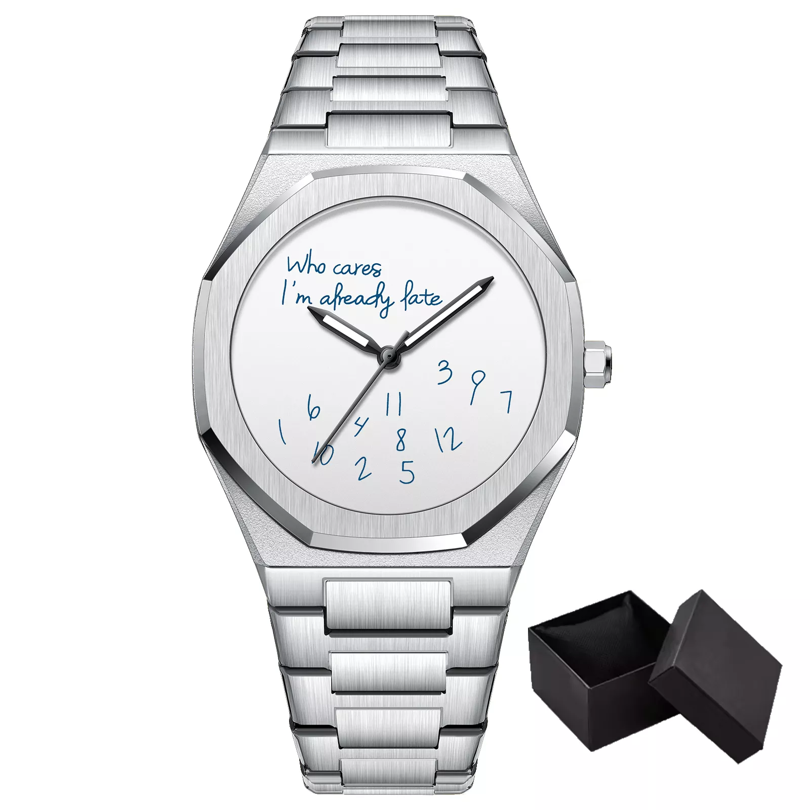 This exquisite watch features a sleek, polished stainless steel strap that exudes strength and confidence. The dial is adorned with clear, easy-to-read Arabic numeral markers, ensuring both style and readability. Crafted to be waterproof, this timepiece keeps ticking through rain, handwashing, or unexpected splashes — giving you peace of mind no matter where the day takes you.
