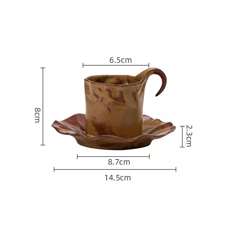 This set is crafted from premium-quality ceramic, designed for both beauty and durability. Its unique hand punch hanging ear handle not only looks stylish but also ensures a comfortable grip. The smooth glaze finish enhances its exquisite appeal while making it easy to clean. Perfectly sized for serving coffee, cappuccino, latte, or even a calming cup of tea, this set makes every sip feel special.