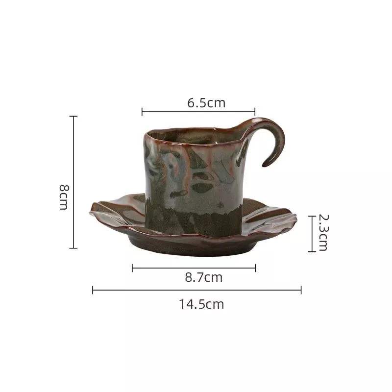 • Size: Cup approx. 3.1 in height and 3.5 in diameter, saucer approx. 5.9 in