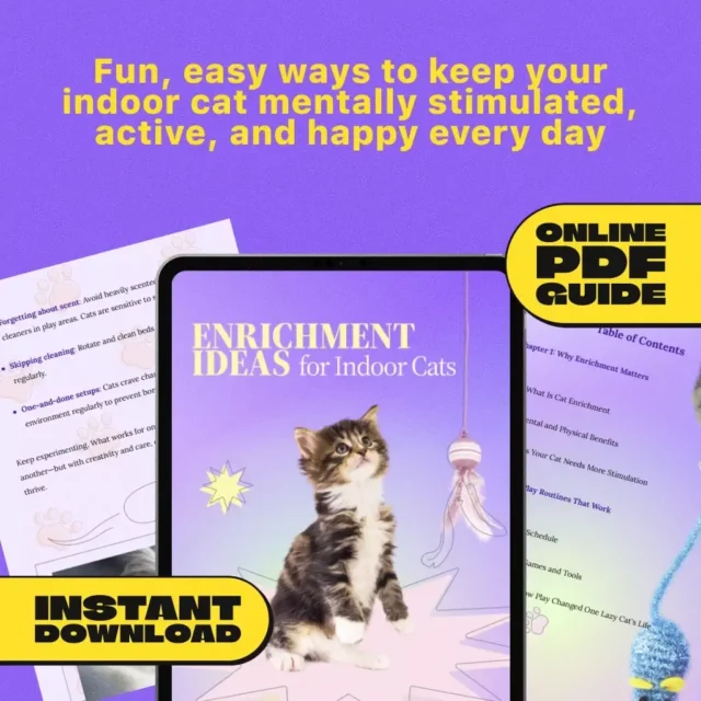 Unlike generic cat advice articles, the Enrichment Ideas for Indoor Cats guide offers a structured, practical plan you can start using immediately. With step-by-step instructions, safety tips, and routines designed for real-life homes, it’s more than inspiration—it’s a solution.