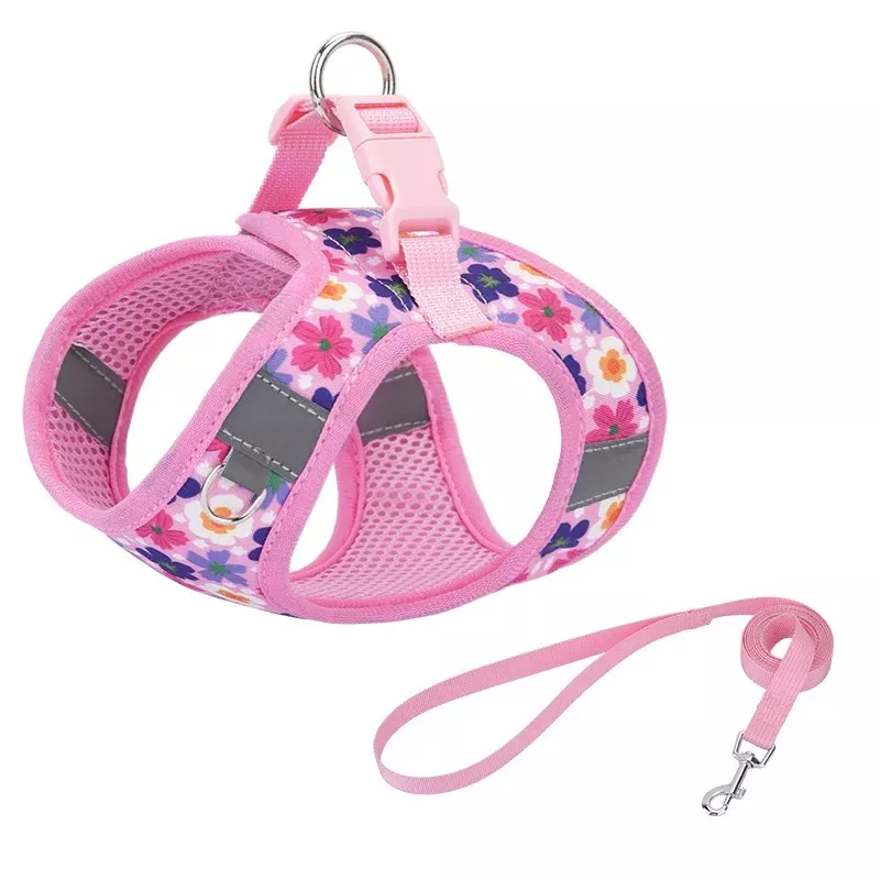 What sets this harness apart is its thoughtful double-strap vest design that distributes pressure evenly, reducing strain on your pet’s neck. It’s gentle yet secure—perfect for small breeds or young dogs still learning the ropes. The bright, floral pattern adds a cheerful pop of personality while ensuring your dog looks adorable at every step.