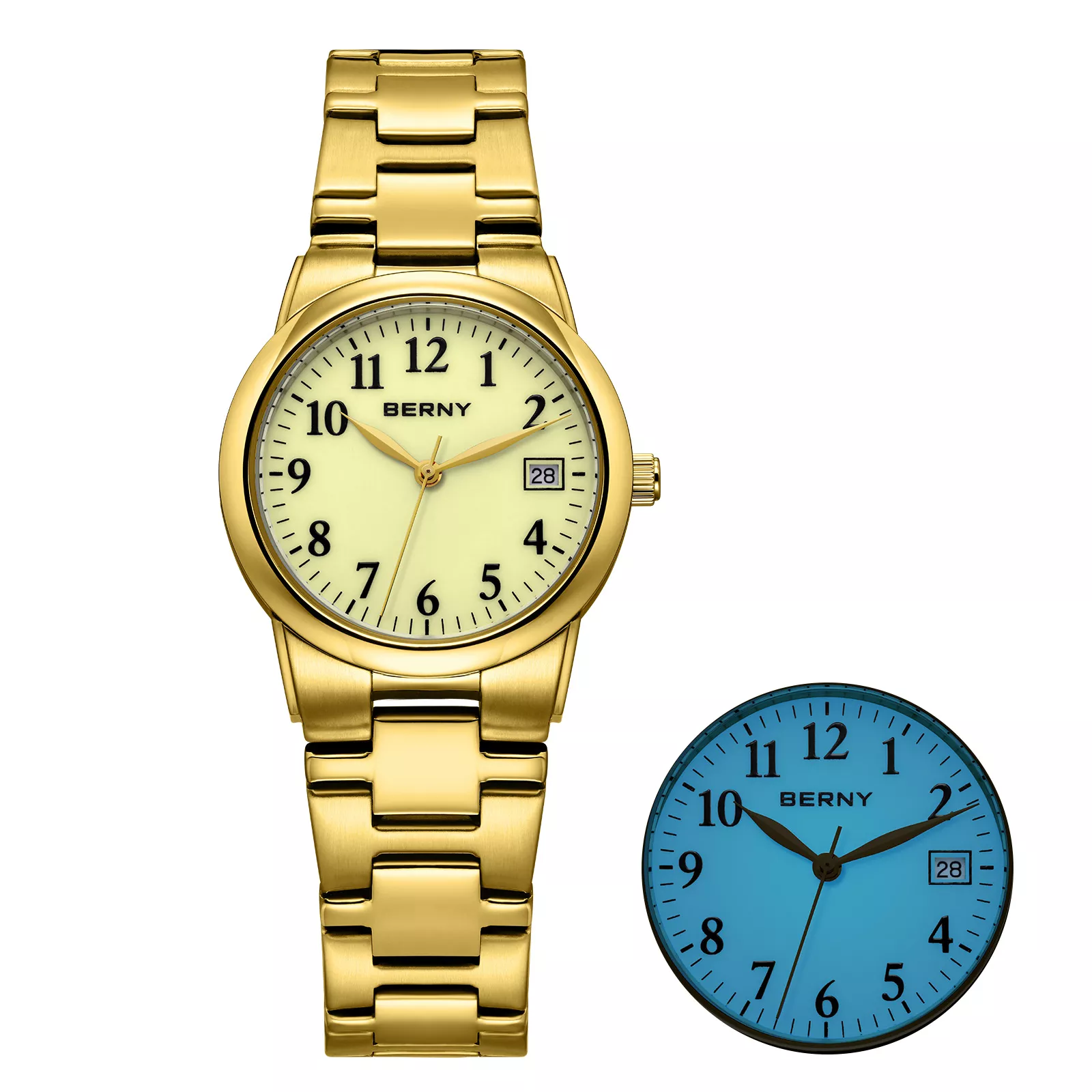 Golden Women’s Quartz Watch with Full Luminous Dial and Calendar