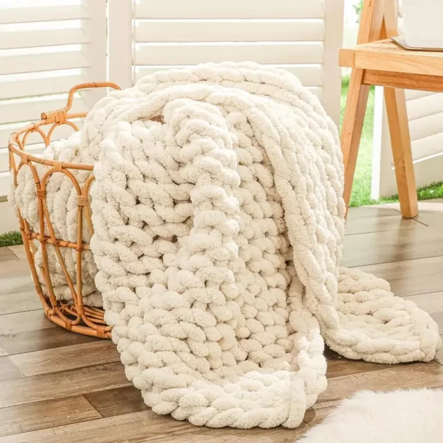 • Thick Jumbo Chenille Yarn: Made with premium chenille yarn, this blanket offers an incredibly soft and plush texture. It’s perfect for relaxing on the couch or adding warmth to your bed.