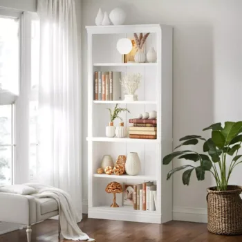 5-Shelf Tall Wood Bookcase, 72″ Open Display Storage Organizer for Bedroom & Living Room