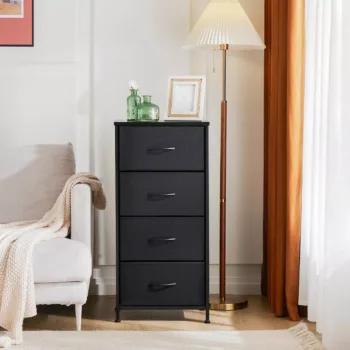 4-Layer Fabric Living Room Cabinet with Wardrobe & Steel Frame for Clothes Storage