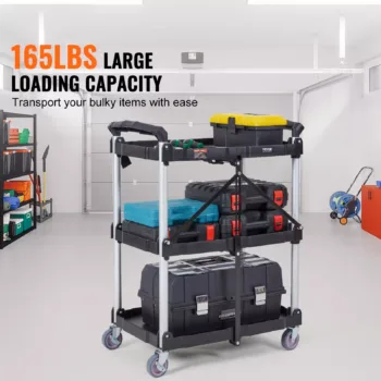 3-Tier Folding Rolling Utility Cart – Slim, Movable Storage for Kitchen & Bathroom