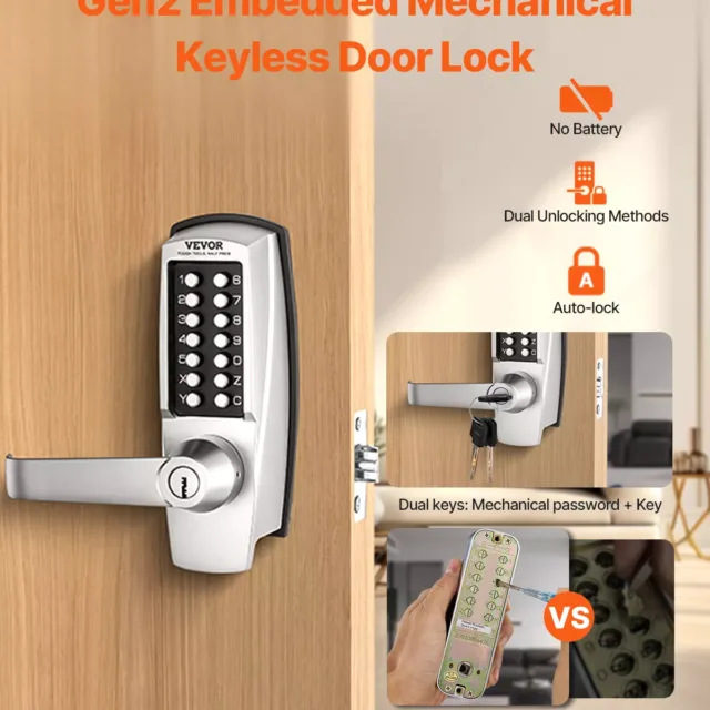This mechanical keyless entry door lock is the perfect blend of security and convenience. It offers an innovative solution to locking and unlocking your doors, making it ideal for homes, offices, storage rooms, and more. The dual unlocking methods provide flexibility, while the automatic locking feature ensures that your door is always secure. You won’t have to worry about dead batteries or malfunctioning electronics, giving you peace of mind every day.
