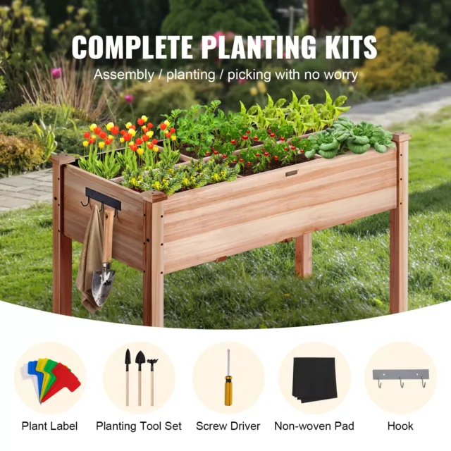 Transform your outdoor space into a blooming paradise with this elevated garden bed. Measuring 47.2 inches long, 22.8 inches wide, and 30 inches tall, this sturdy wooden planter box is designed for easy gardening and provides your plants with ample space to grow. Ideal for flowers, vegetables, herbs, and succulents, it’s the perfect solution for anyone looking to start their own garden without the hassle of bending over or dealing with pests. Its ergonomic design makes planting comfortable, while its durable construction ensures that your garden flourishes for seasons to come.