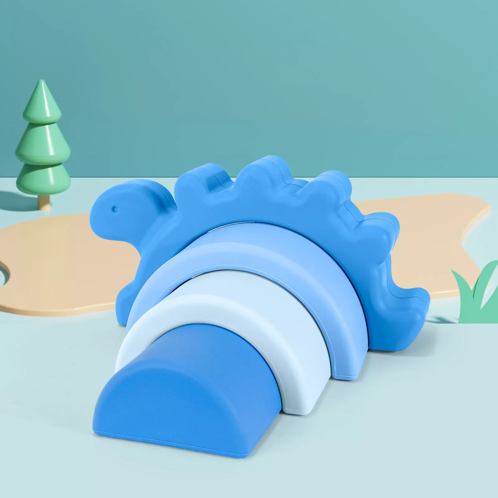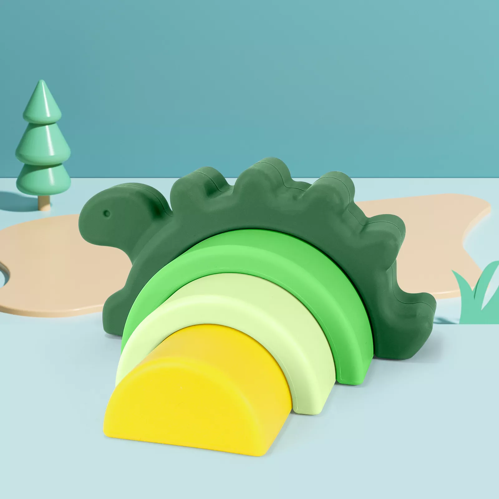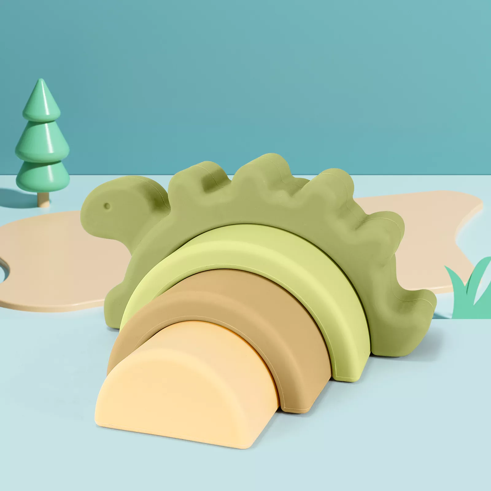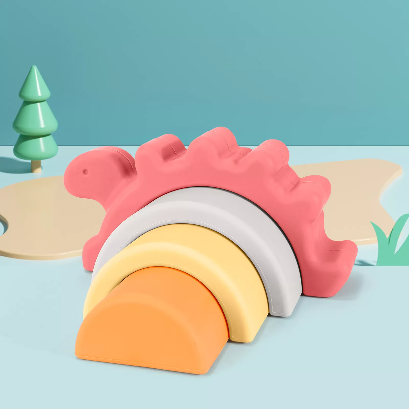 Silicone Dinosaur Arch Blocks – Montessori Shape & Color Learning Toy
