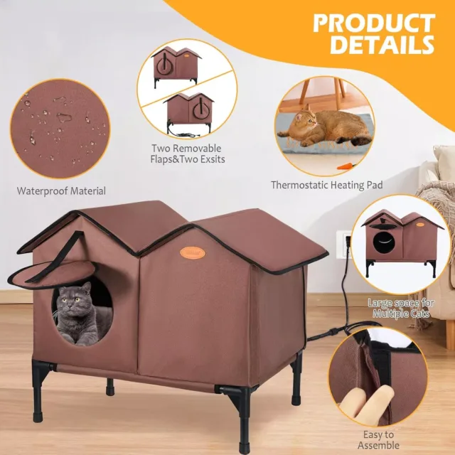 Weatherproof Heated Outdoor Cat House for Multiple Cats – Easy to Assemble, Winter-Ready