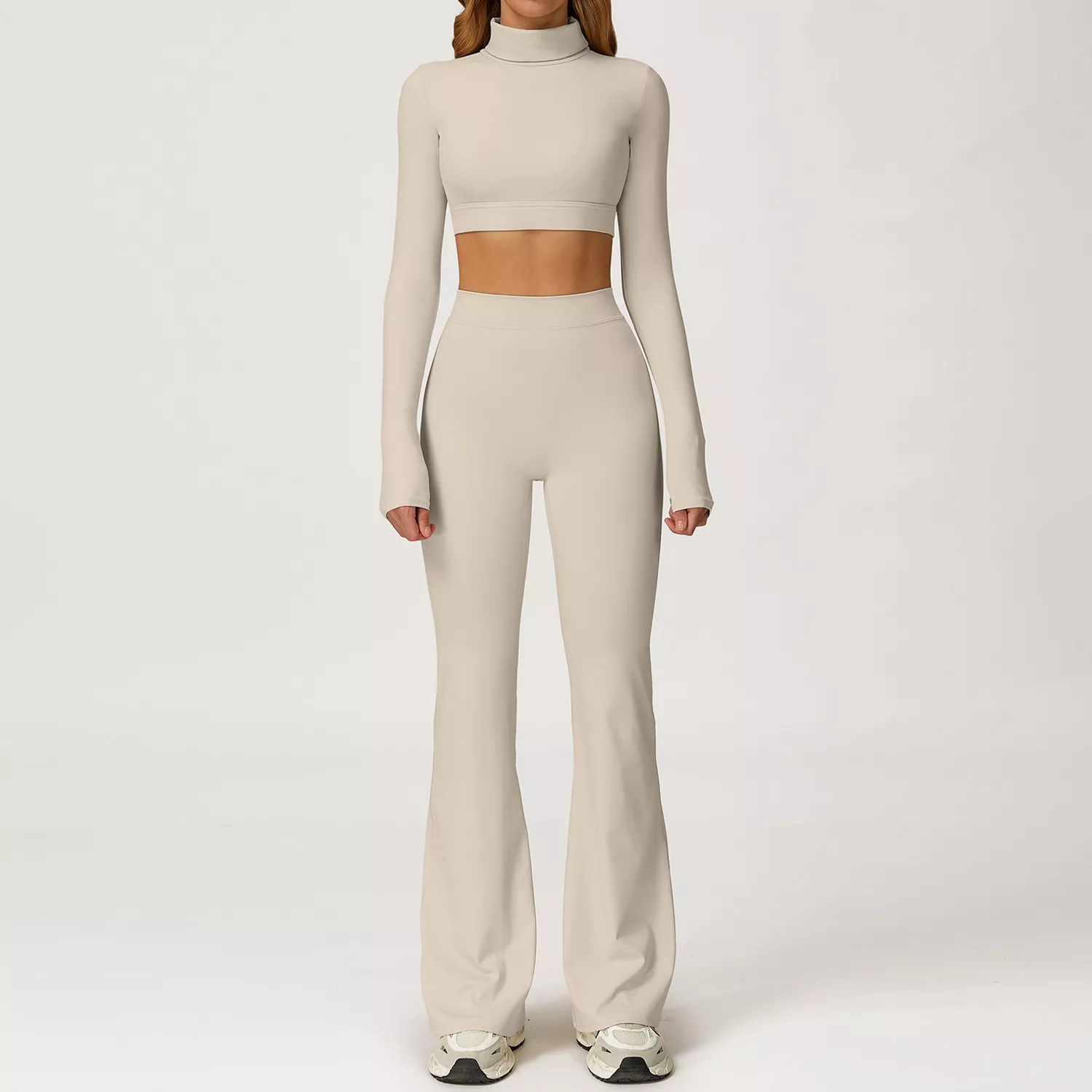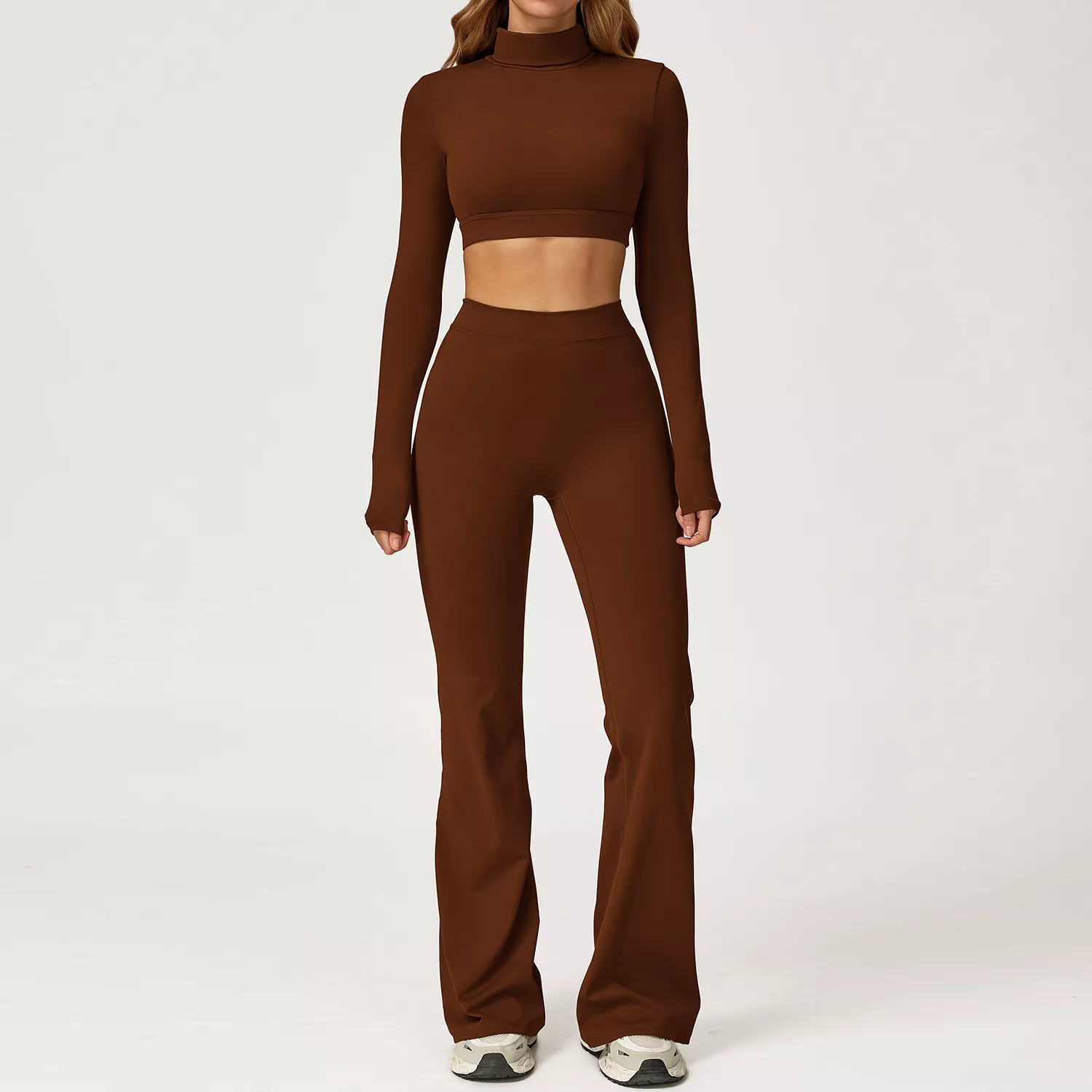 This athletic suit is all about functionality and confidence. The top and leggings are designed to move with you, giving you full freedom during intense workouts or relaxed stretching. The material is breathable, soft against the skin, and offers a snug fit that flatters your shape without feeling restrictive.